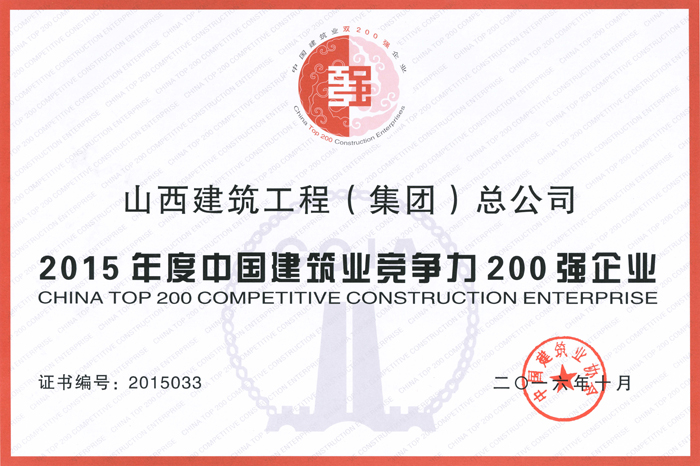 2015年度山西省优秀建筑企业