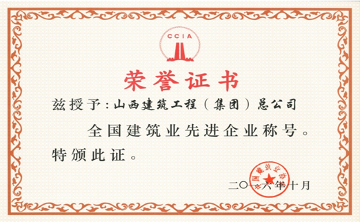 优秀建筑业企业证书