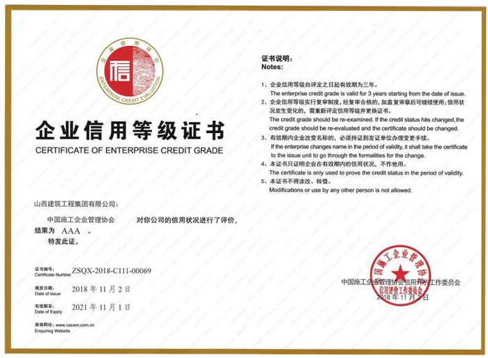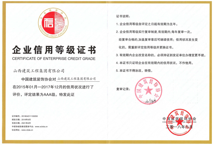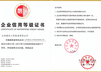 中国装饰协会企业信用等级证书