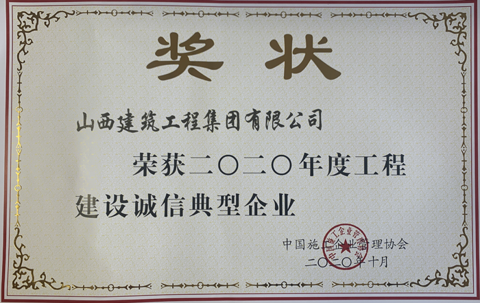 工程建设诚信典型企业奖状