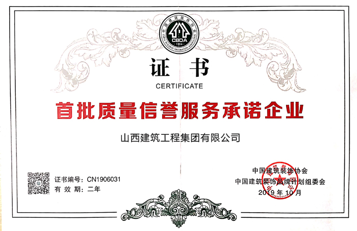 中装协质量信誉服务承诺企业