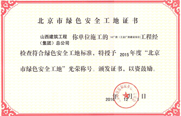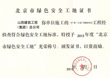 北京市绿色安全工地证书