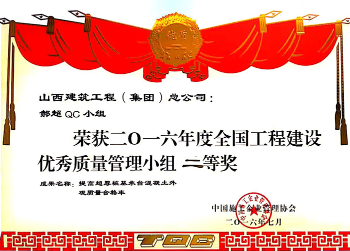 全国工程建设优秀质量管理小组二等奖