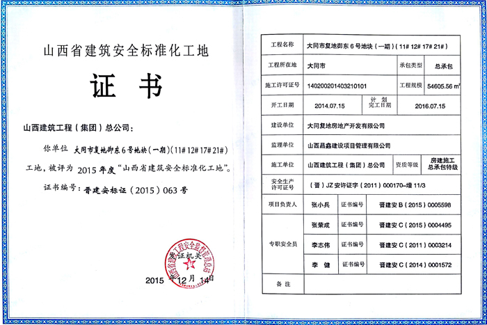 山西省建筑安全标准化工地