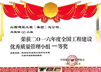 全国工程建设优秀质量管理小组一等奖
